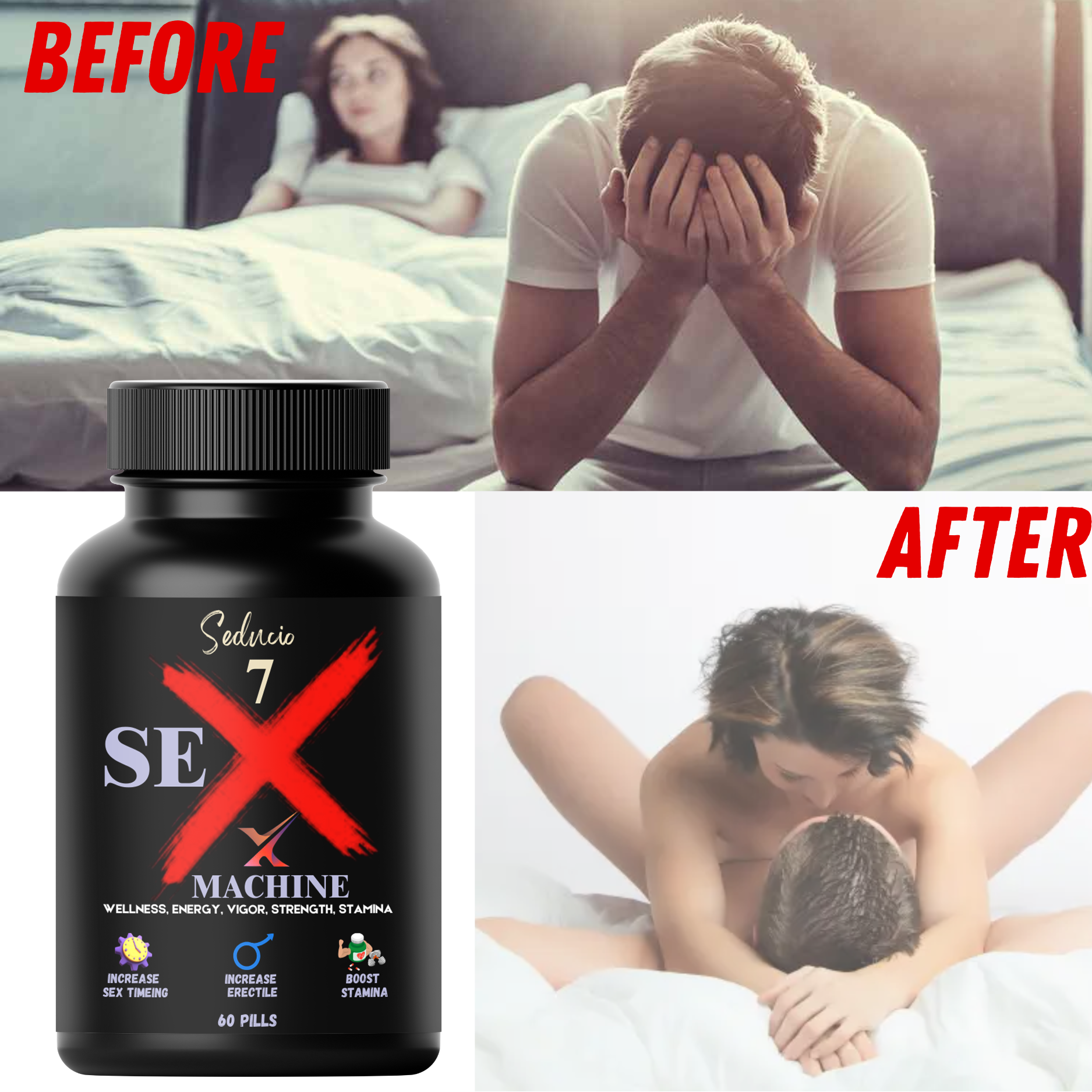 SEDUCIO 7X works by supporting natural body functions related to energy, circulation, and hormonal balance. With regular use, it may help improve physical performance and reduce fatigue, helping you stay active and confident.