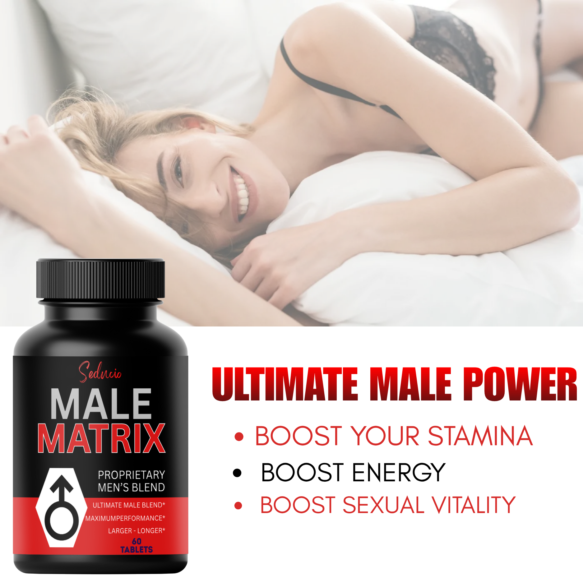 SEDUCIO Male Matrix 60 Pills is a powerful daily supplement designed to support male strength, stamina, and overall vitality. Built with a performance-focused formula, it helps enhance energy levels, improve endurance, and support consistent performance.