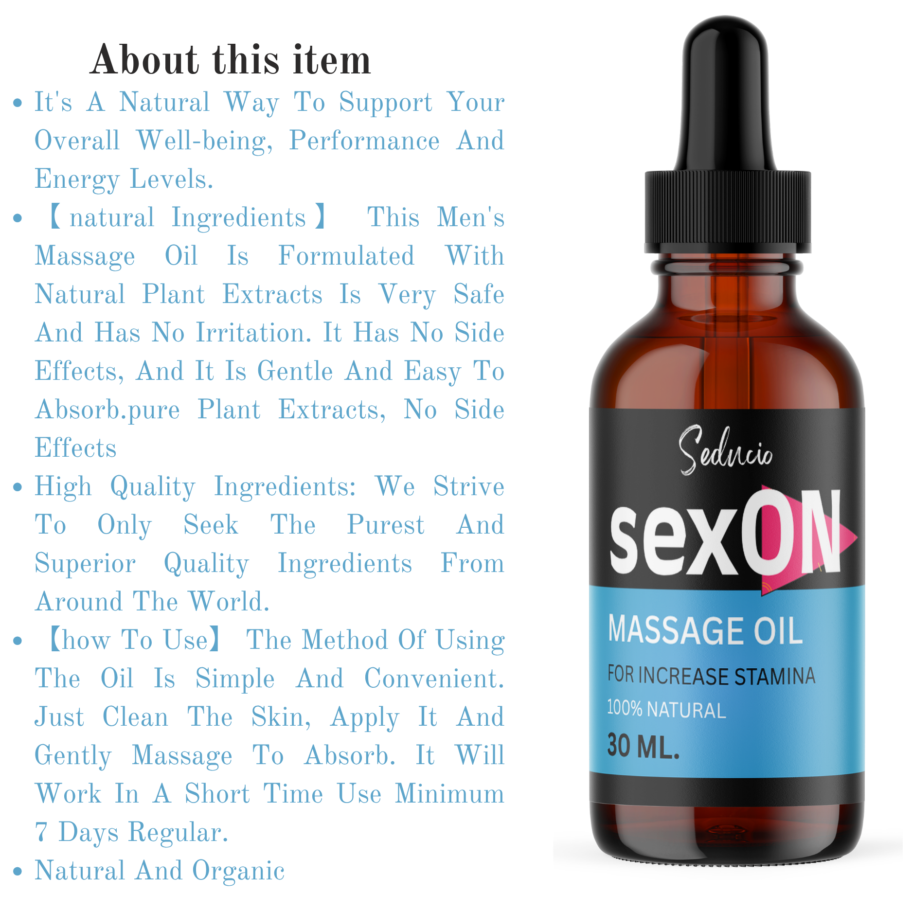 SEDUCIO Sexon Oil is a premium personal care oil designed to support comfort, confidence, and overall performance. Its smooth, skin-friendly formulation helps promote relaxation and better circulation, making it a valuable addition to your daily routine.