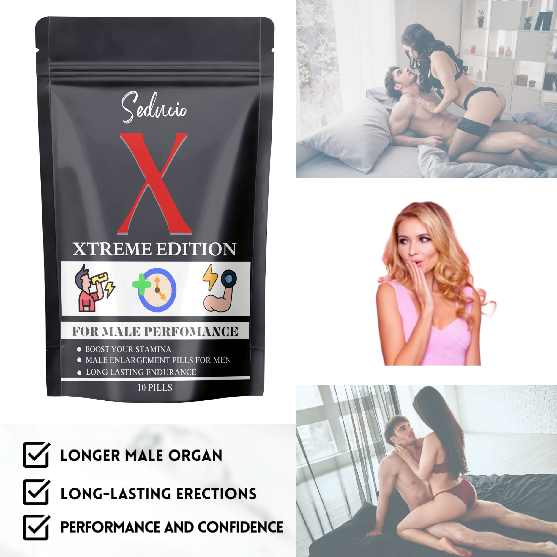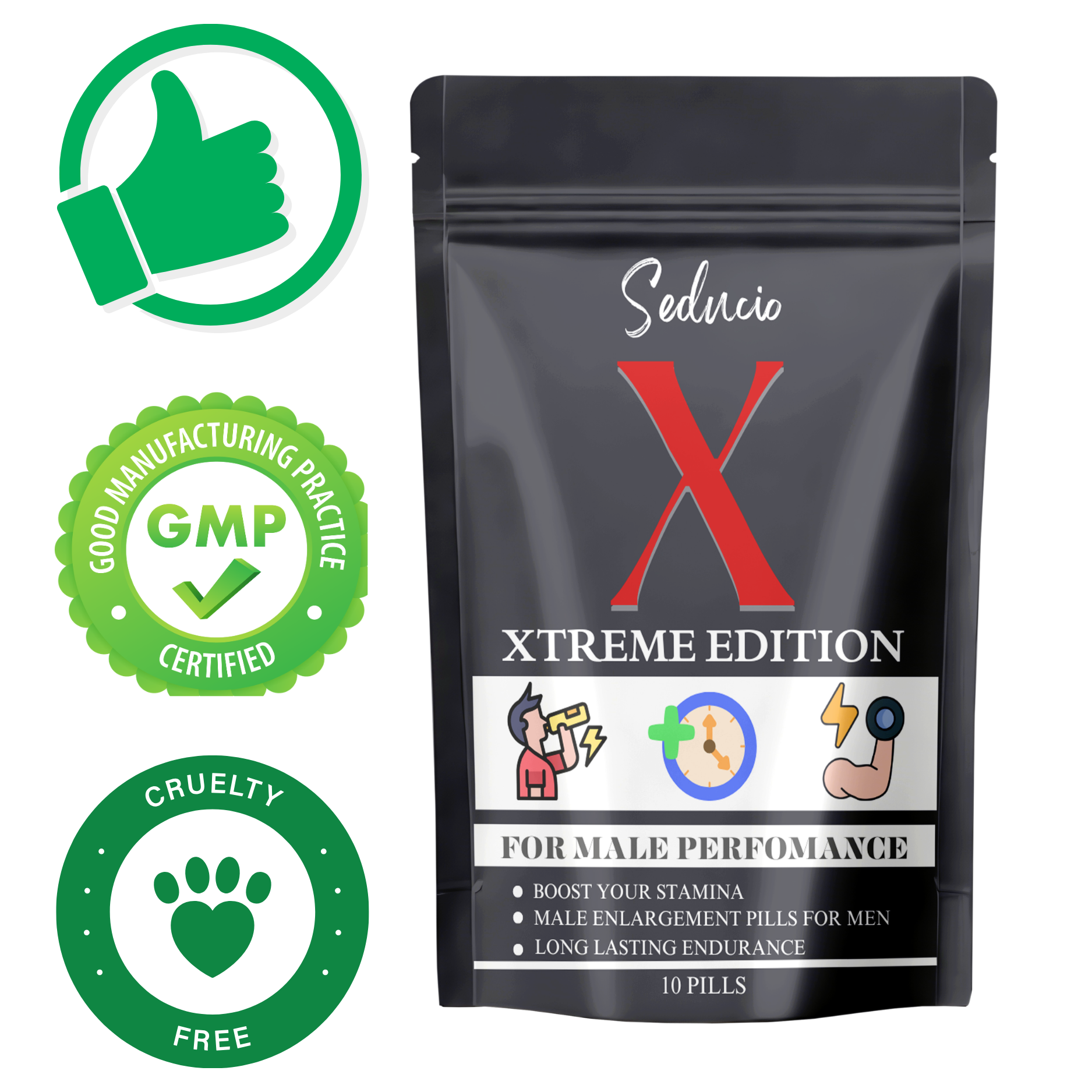 SEDUCIO Xtreme Edition 10 Pills is a compact, high-performance supplement designed to support energy, stamina, and overall male vitality. Crafted for men who want powerful performance and confidence, this advanced formula helps enhance endurance and maintain consistent energy levels.